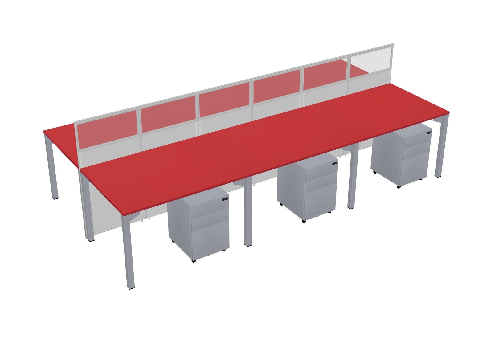 Prism Red Shared Rectangular Office Cubicle Panel System With Mobile Drawers For 6 Persons