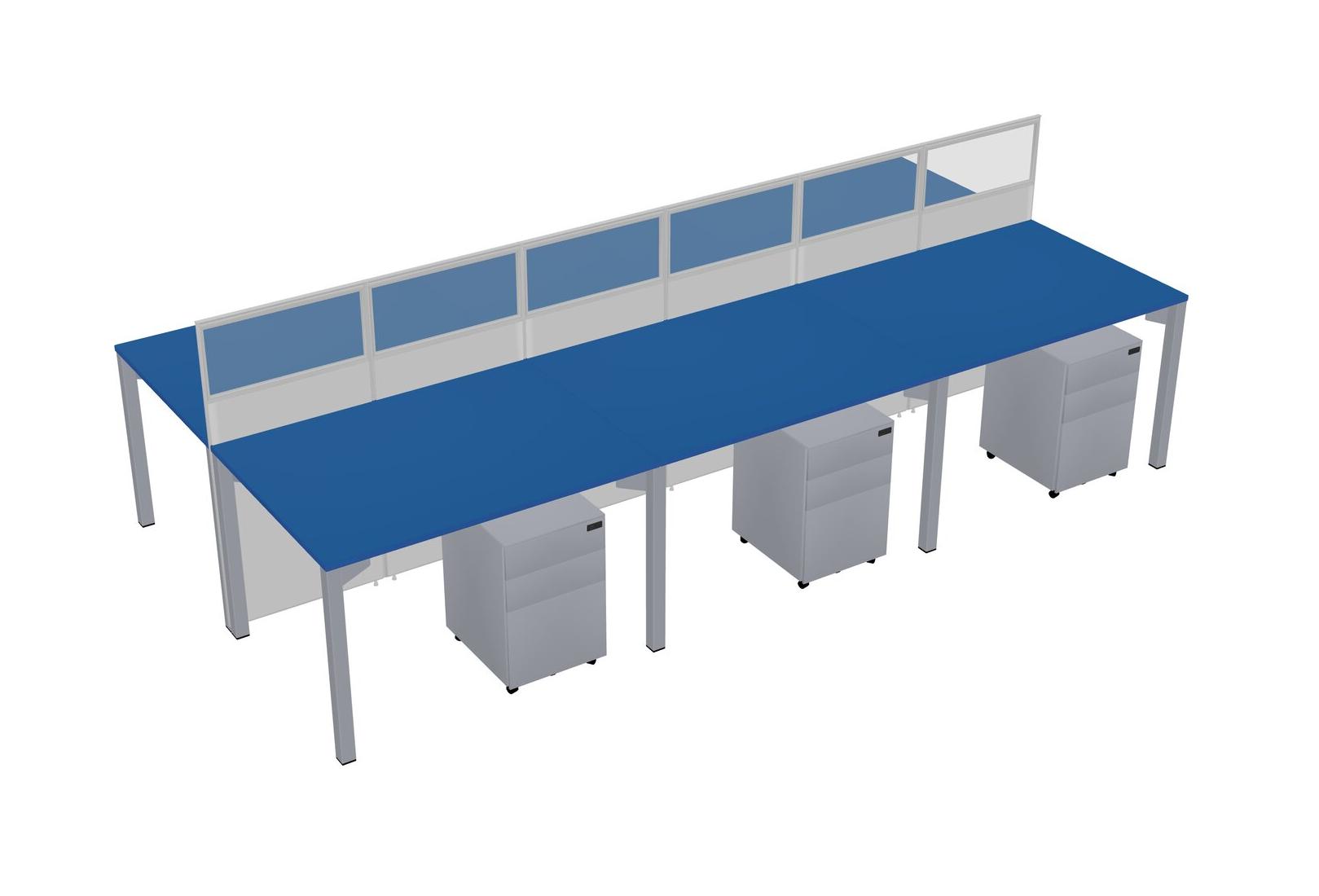 Prism Blue Shared Rectangular Office Cubicle Panel System With Mobile Drawers For 6 Persons