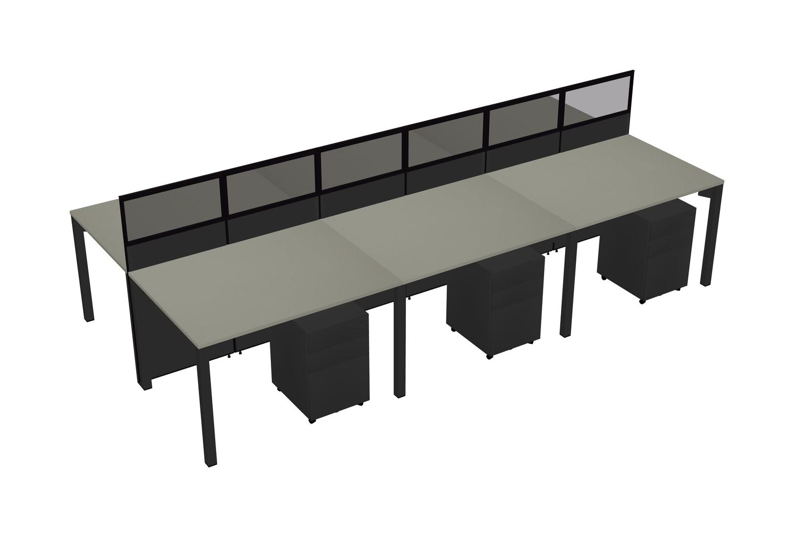 Grey Shadows Shared Rectangular Office Cubicle Panel System With Mobile Drawers For 6 Persons