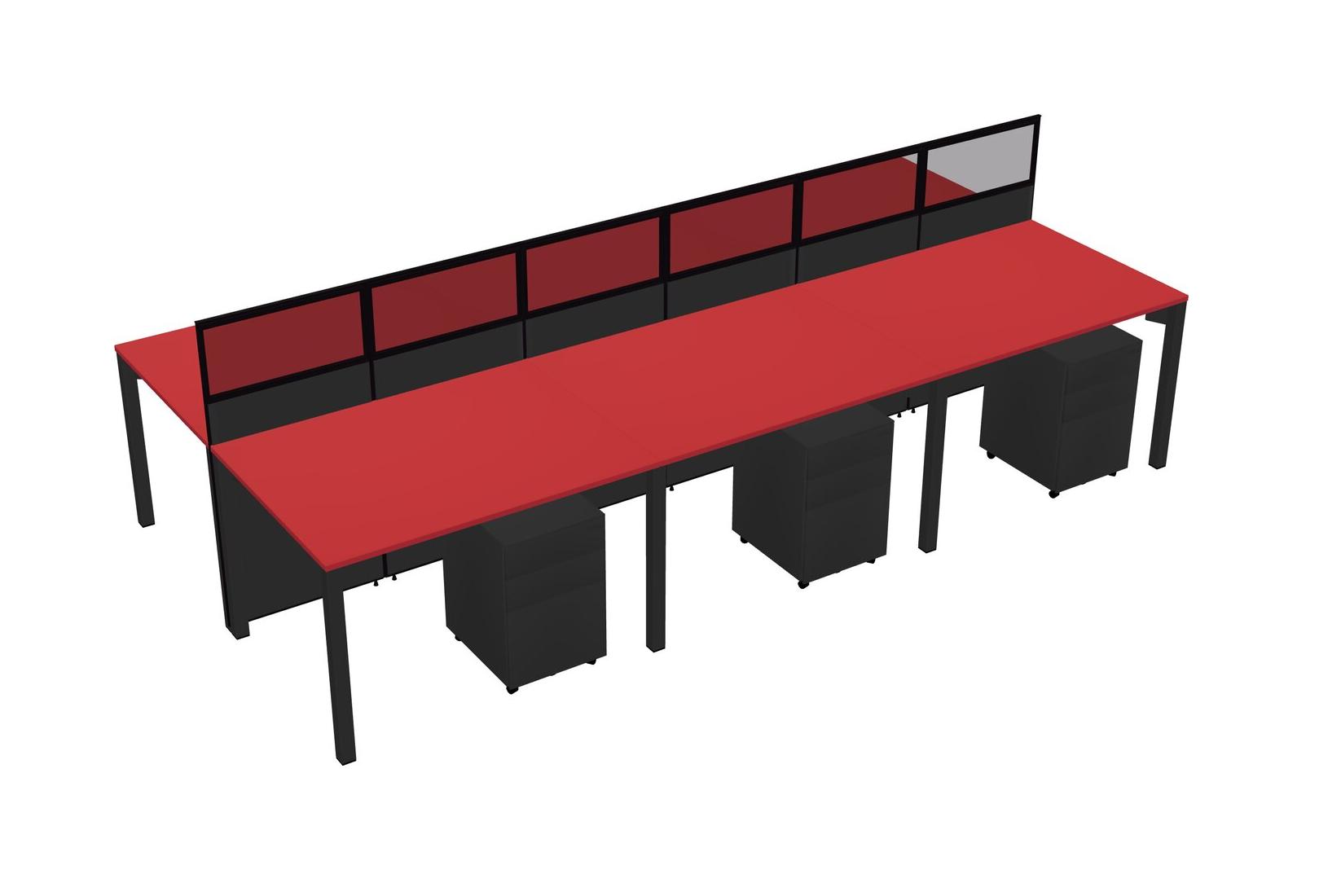 Prism Red Shared Rectangular Office Cubicle Panel System With Mobile Drawers For 6 Persons