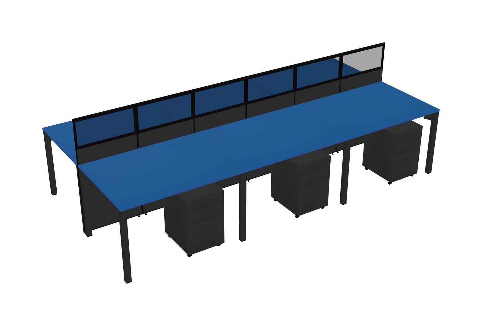 Prism Blue Shared Rectangular Office Cubicle Panel System With Mobile Drawers For 6 Persons