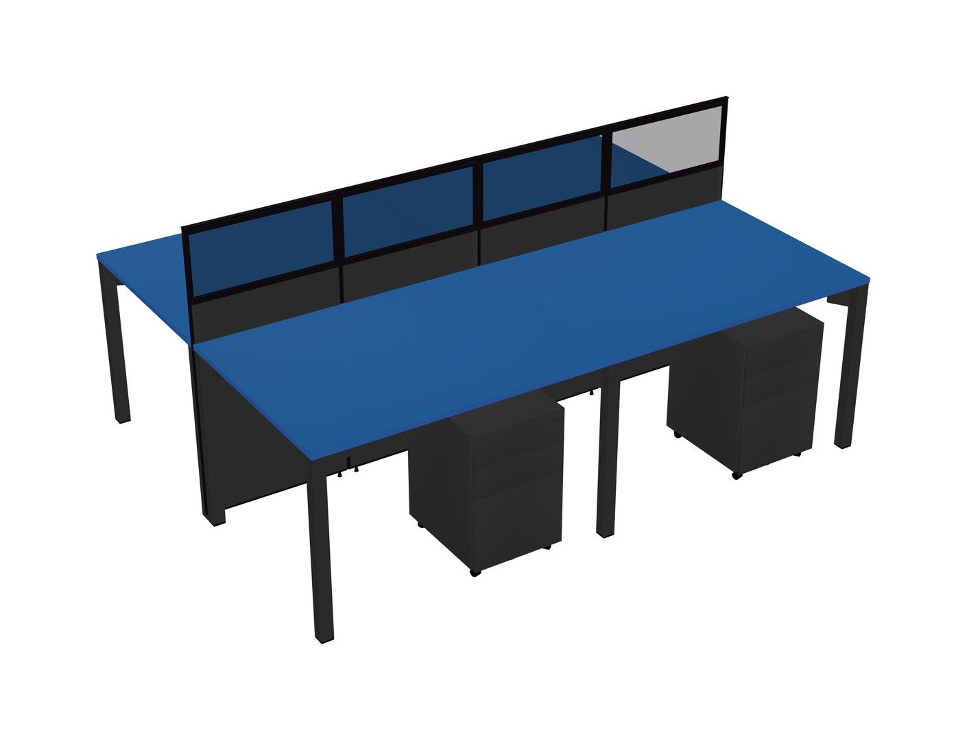Prism Blue Shared Rectangular Office Cubicle Panel System With Mobile Drawers For 4 Persons