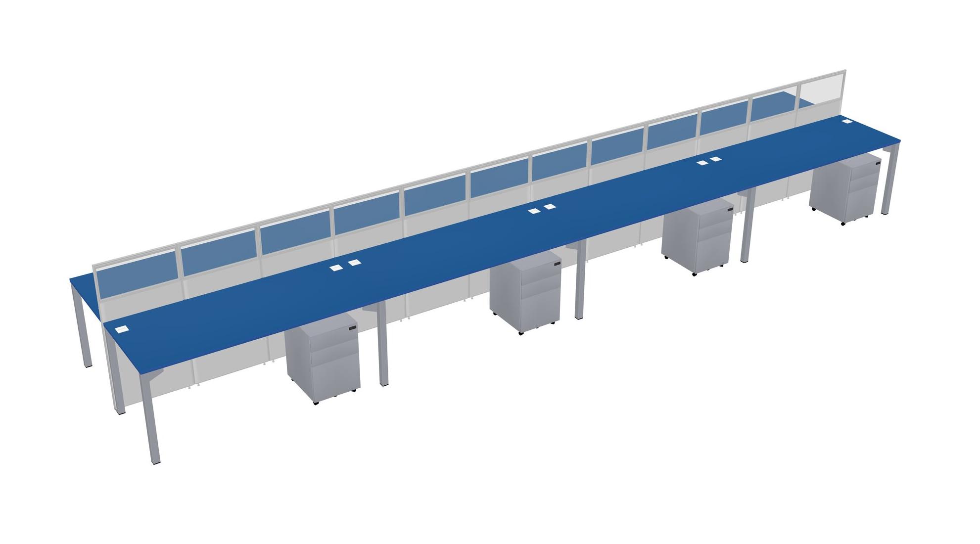 Prism Blue Shared Rectangular Office Cubicle Panel System With Mobile Drawers For 8 Persons