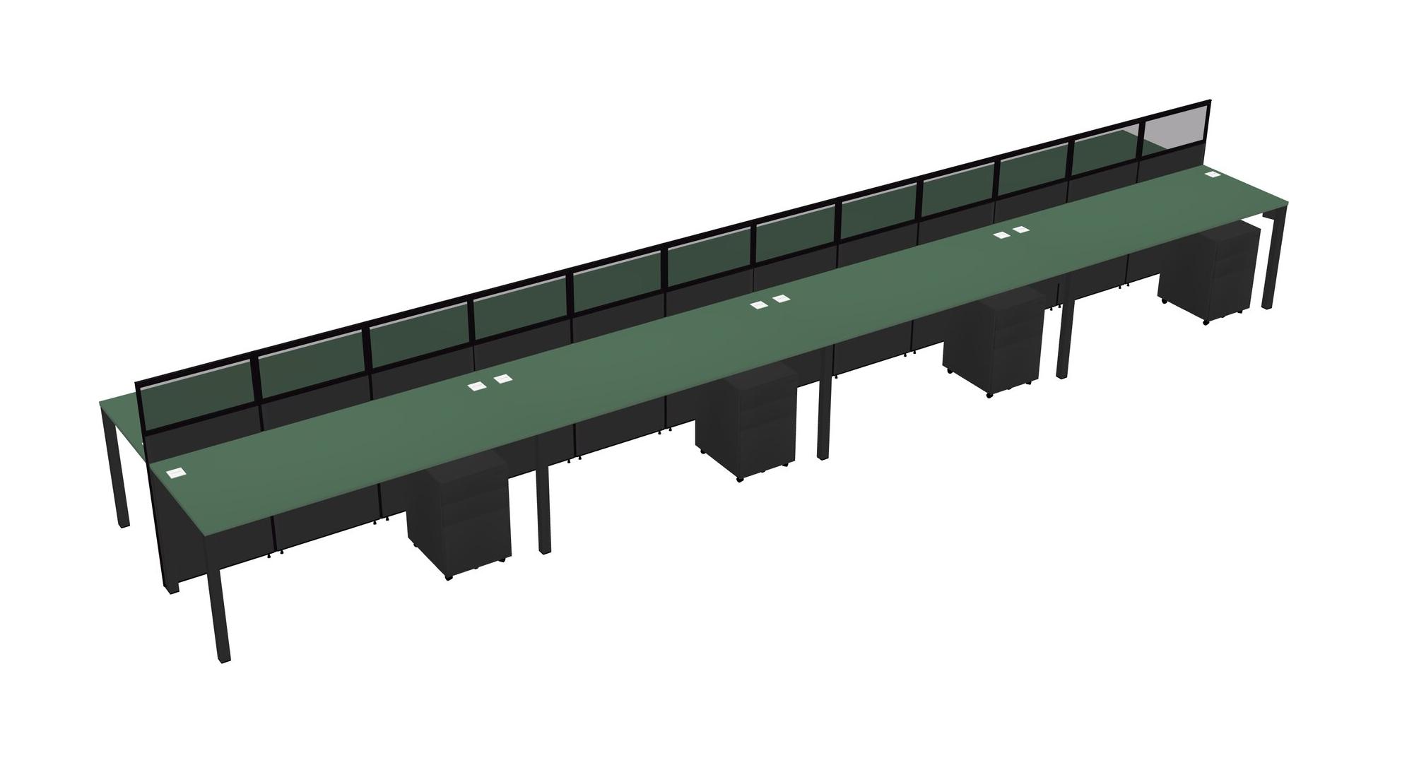 Green Shared Rectangular Office Cubicle Panel System With Mobile Drawers For 8 Persons