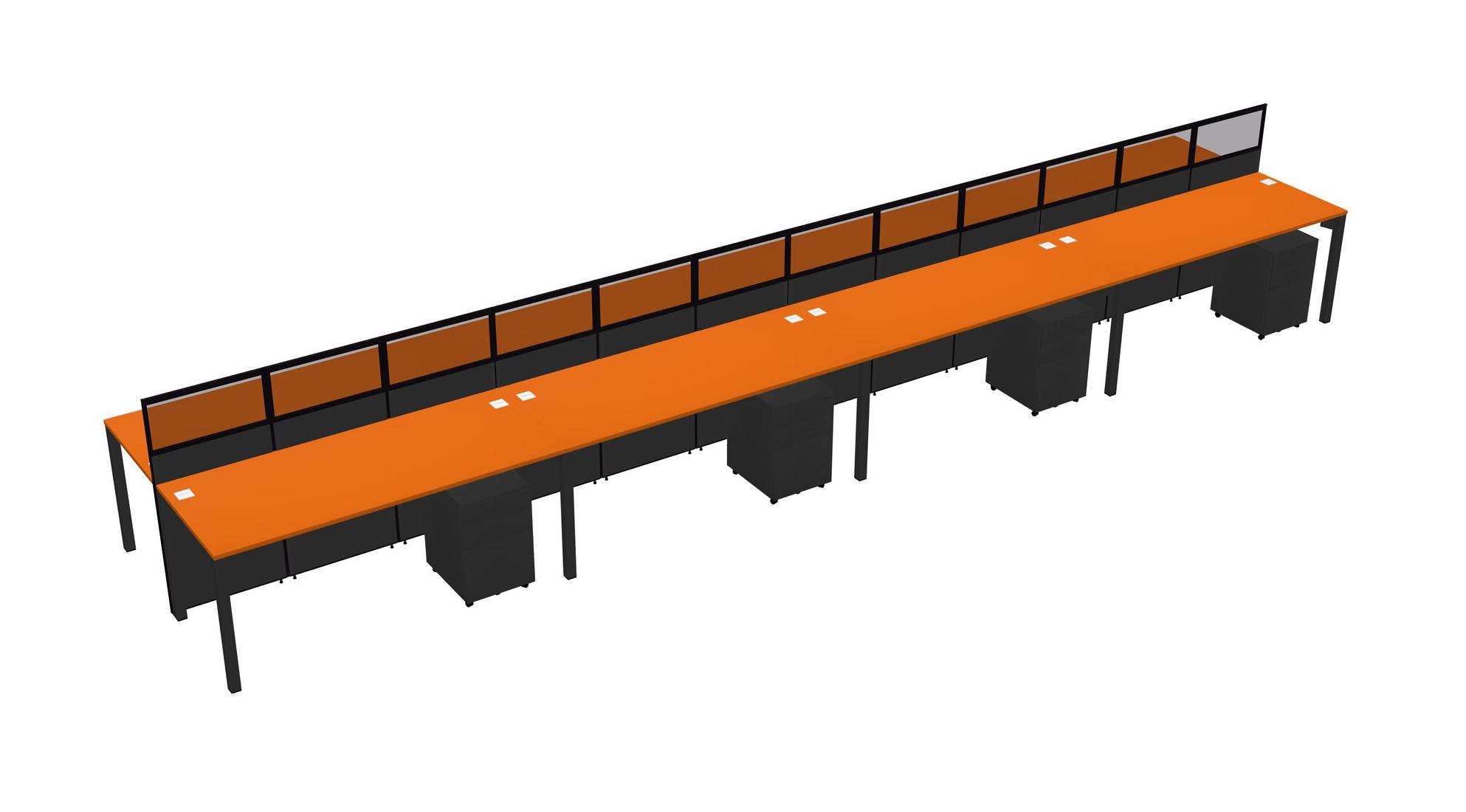 Orange Shared Rectangular Office Cubicle Panel System With Mobile Drawers For 8 Persons