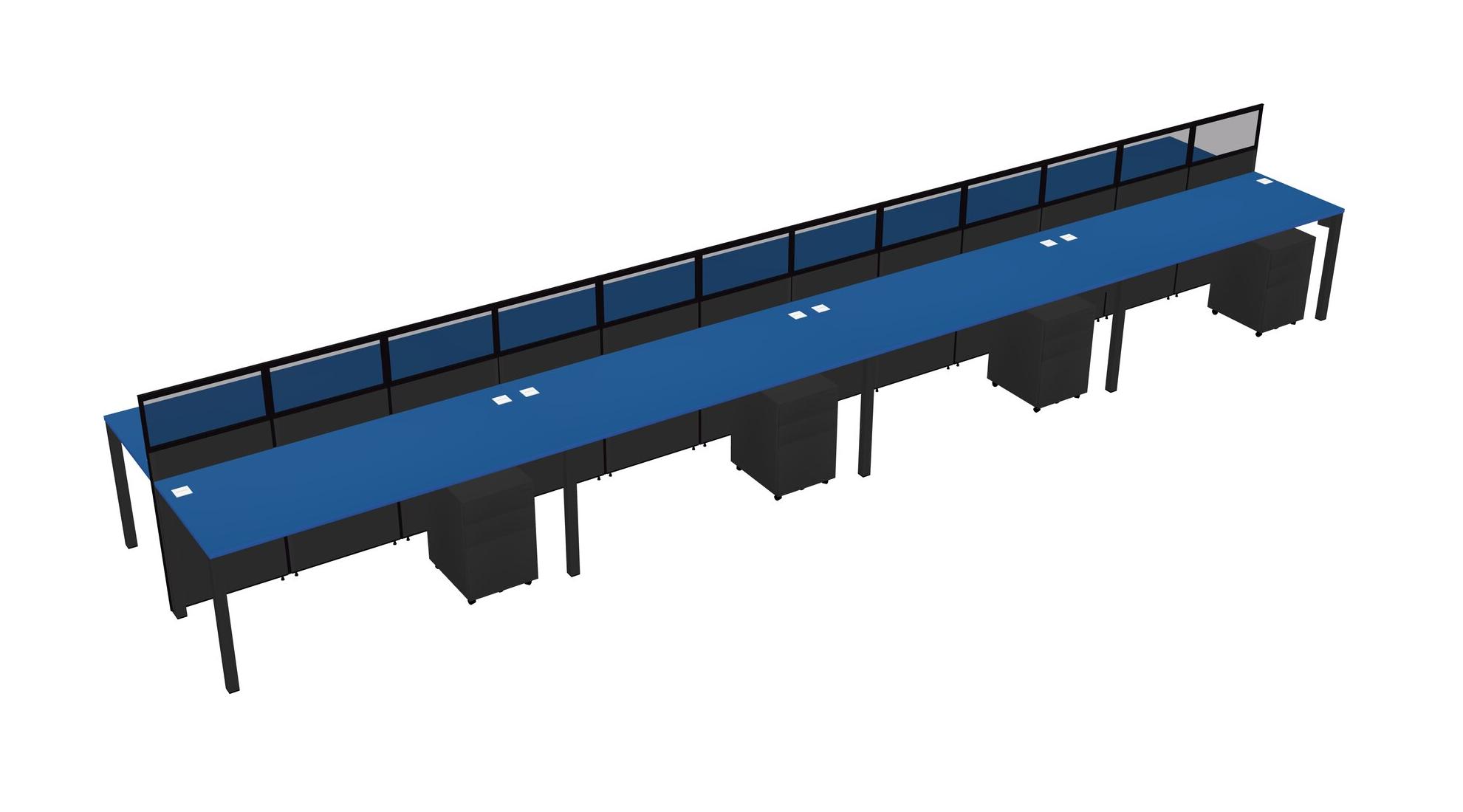 Prism Blue Shared Rectangular Office Cubicle Panel System With Mobile Drawers For 8 Persons