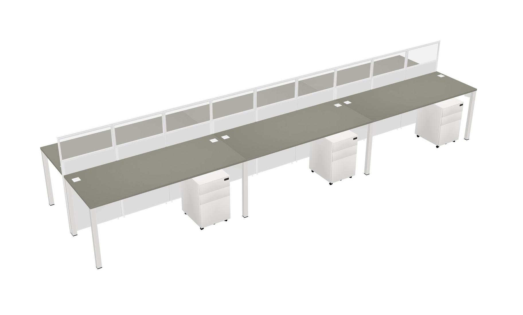 Grey Shadows Shared Rectangular Office Cubicle Panel System With Mobile Drawers For 6 Persons