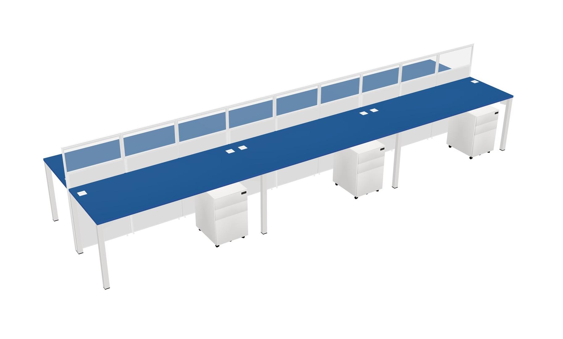 Prism Blue Shared Rectangular Office Cubicle Panel System With Mobile Drawers For 6 Persons