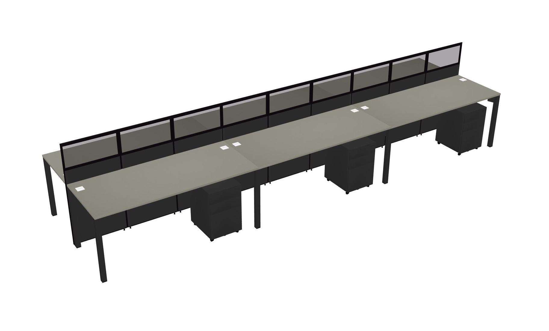 Grey Shadows Shared Rectangular Office Cubicle Panel System With Mobile Drawers For 6 Persons