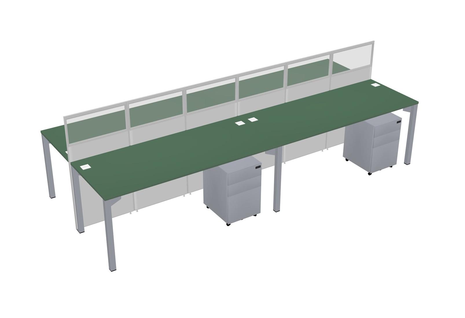 Green Shared Rectangular Office Cubicle Panel System With Mobile Drawers For 4 Persons