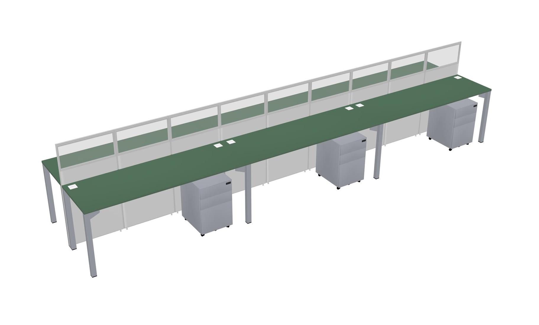 Green Shared Rectangular Office Cubicle Panel System With Mobile Drawers For 6 Persons