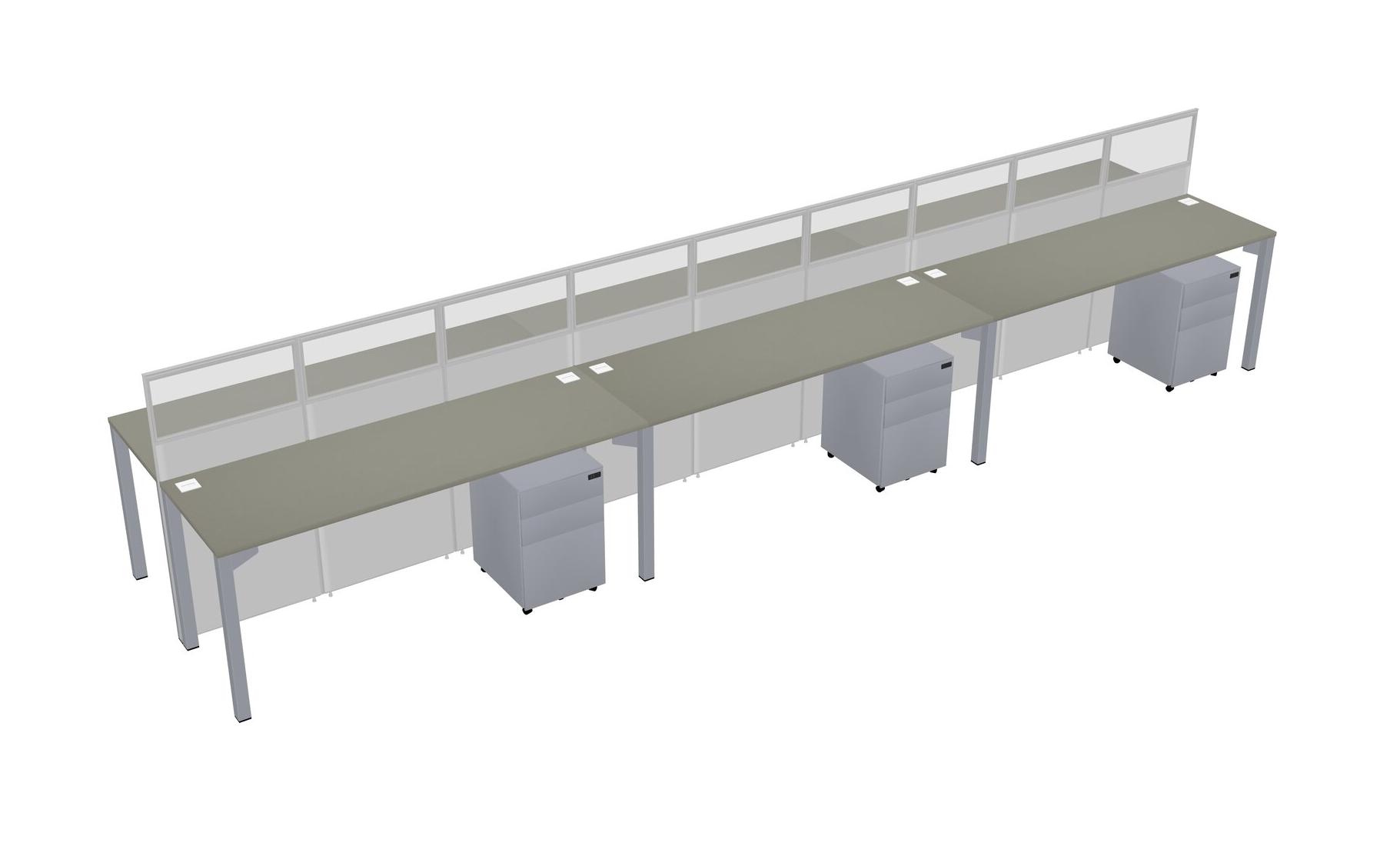 Grey Shadows Shared Rectangular Office Cubicle Panel System With Mobile Drawers For 6 Persons