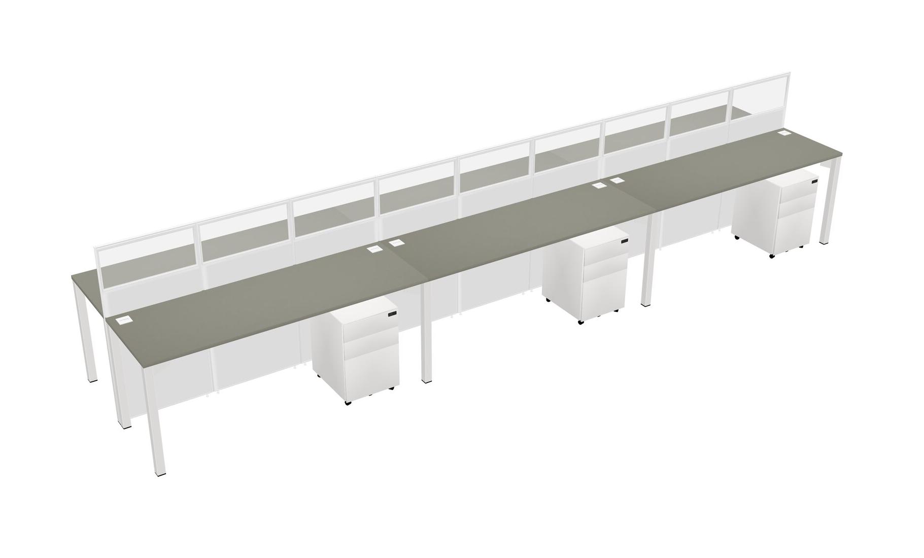 Grey Shadows Shared Rectangular Office Cubicle Panel System With Mobile Drawers For 6 Persons