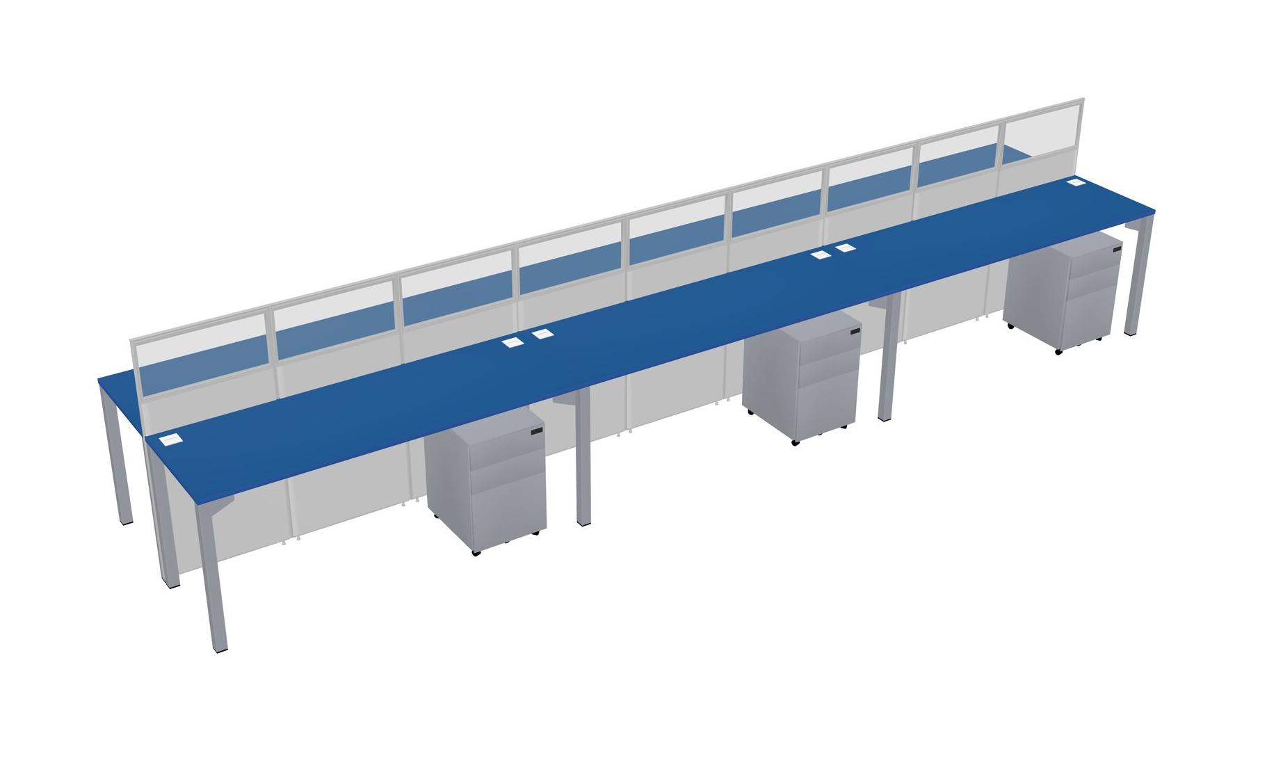 Prism Blue Shared Rectangular Office Cubicle Panel System With Mobile Drawers For 6 Persons