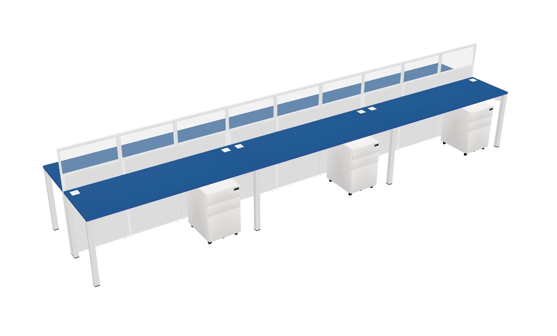 Prism Blue Shared Rectangular Office Cubicle Panel System With Mobile Drawers For 6 Persons