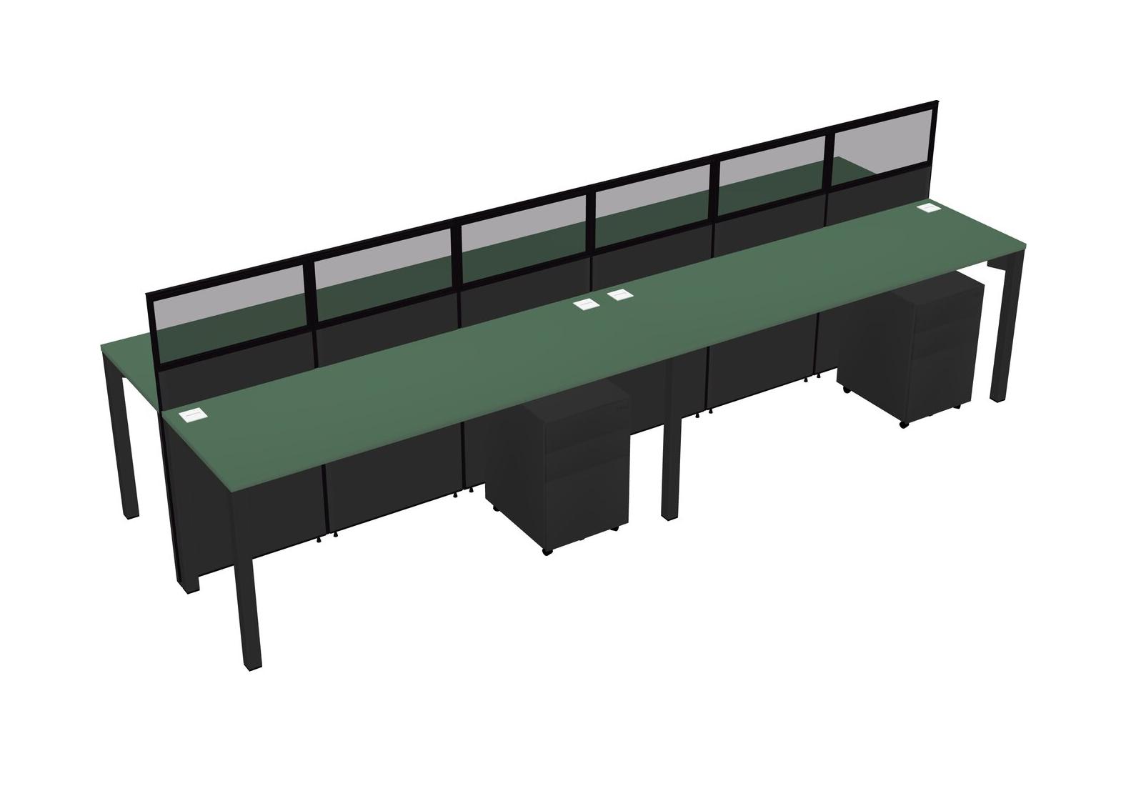 Green Shared Rectangular Office Cubicle Panel System With Mobile Drawers For 4 Persons