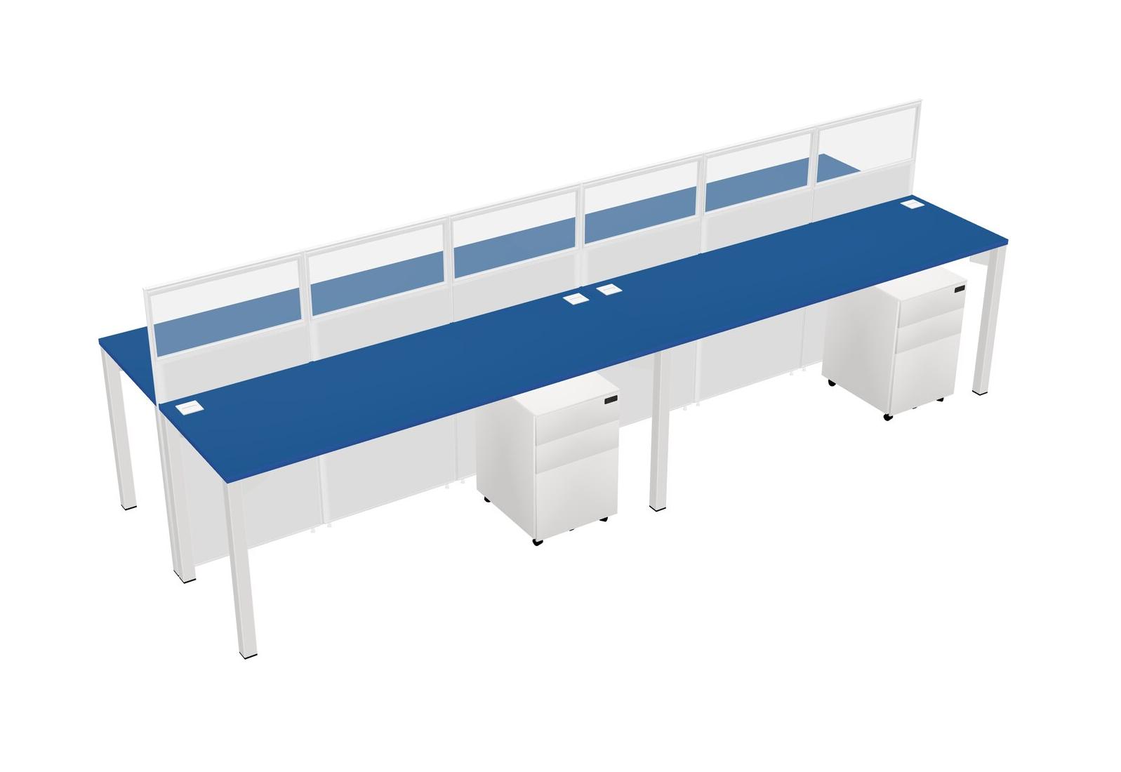 Prism Blue Shared Rectangular Office Cubicle Panel System With Mobile Drawers For 4 Persons