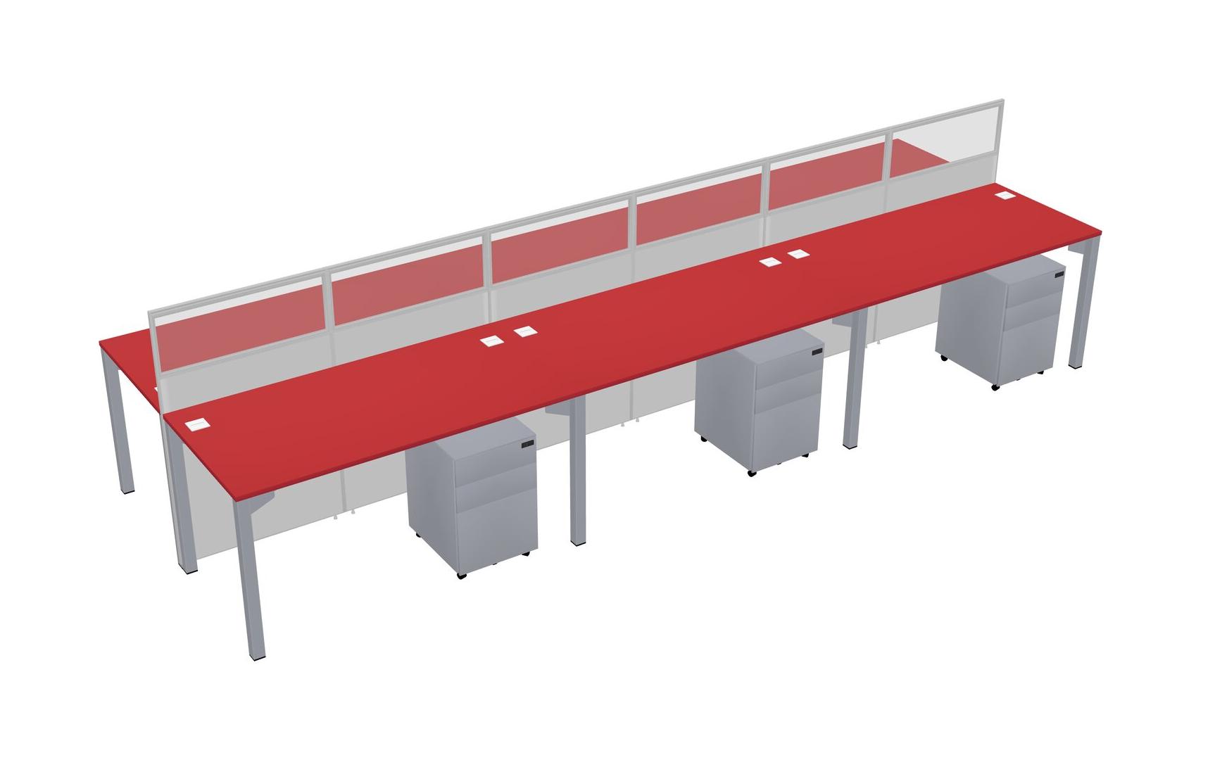 Prism Red Shared Rectangular Office Cubicle Panel System With Mobile Drawers For 6 Persons