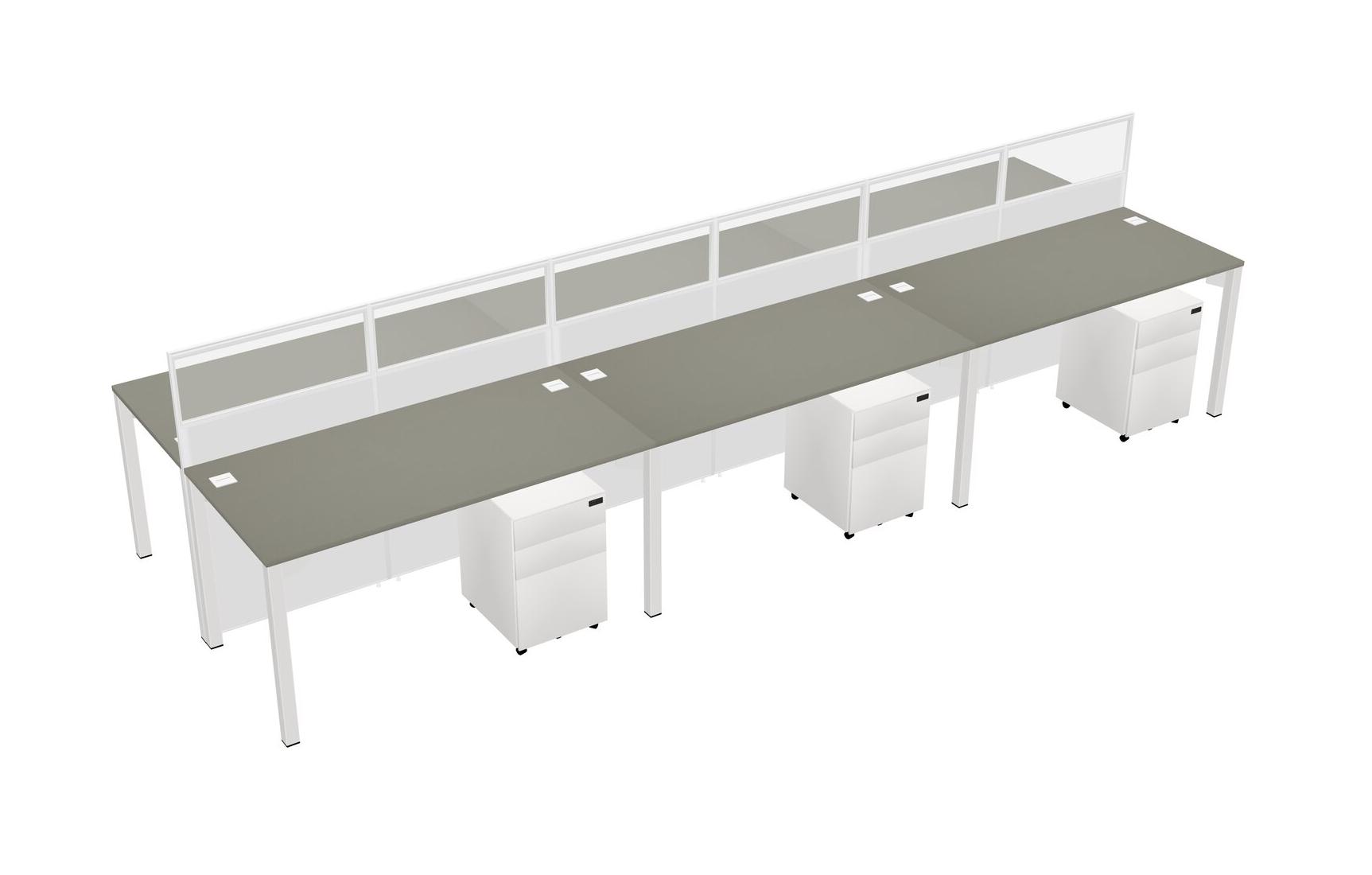 Grey Shadows Shared Rectangular Office Cubicle Panel System With Mobile Drawers For 6 Persons