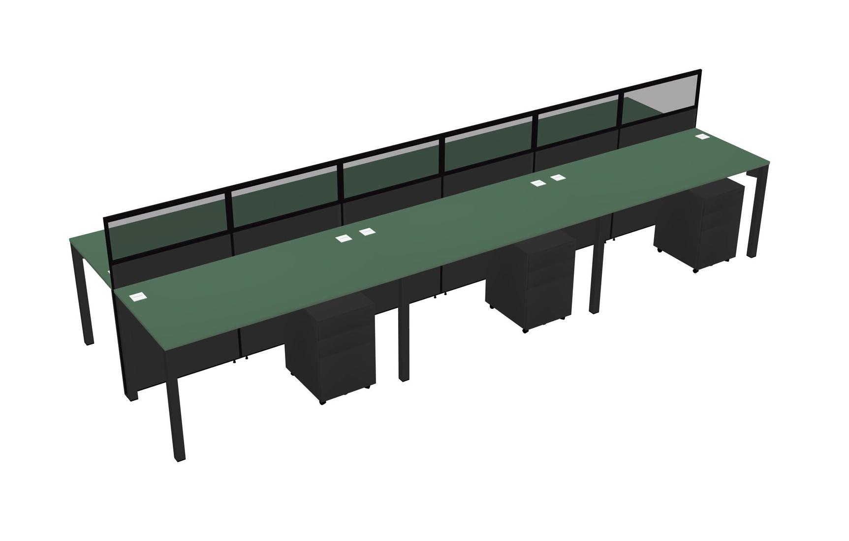 Green Shared Rectangular Office Cubicle Panel System With Mobile Drawers For 6 Persons