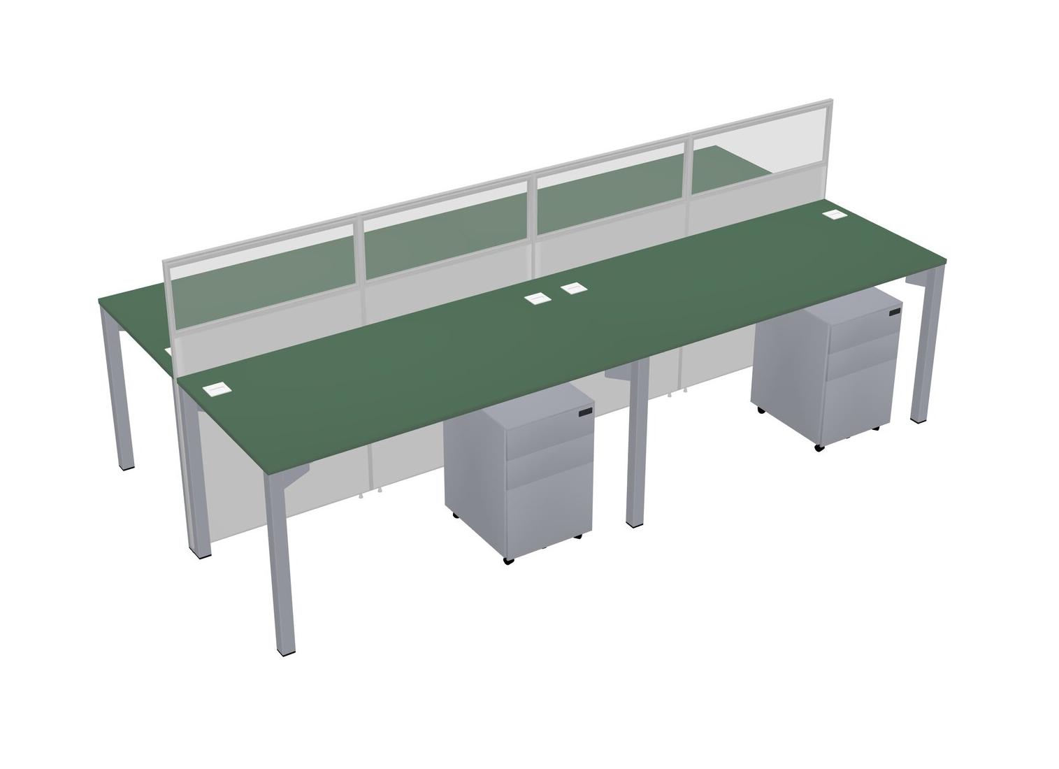 Green Shared Rectangular Office Cubicle Panel System With Mobile Drawers For 4 Persons
