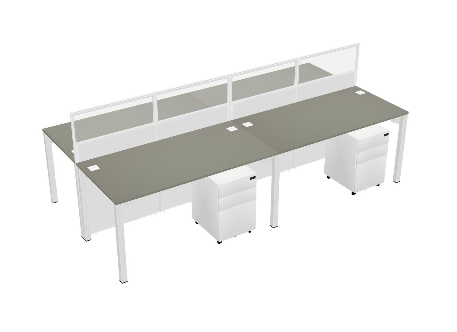 Grey Shadows Shared Rectangular Office Cubicle Panel System With Mobile Drawers For 4 Persons