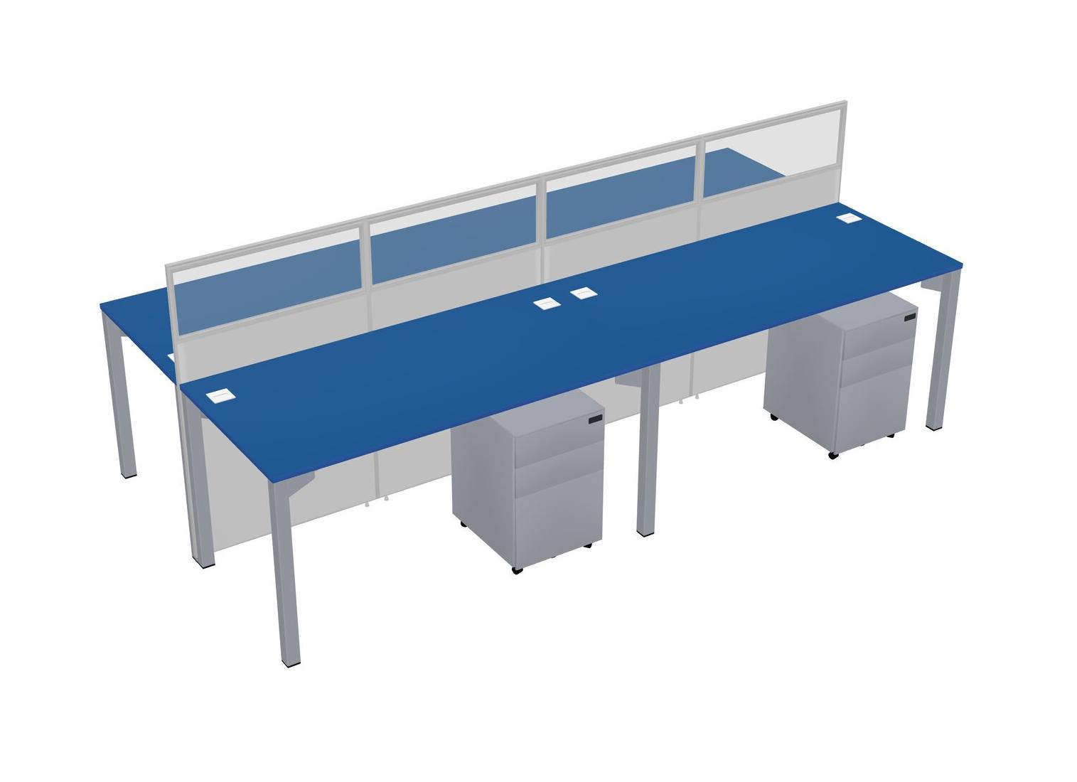 Prism Blue Shared Rectangular Office Cubicle Panel System With Mobile Drawers For 4 Persons