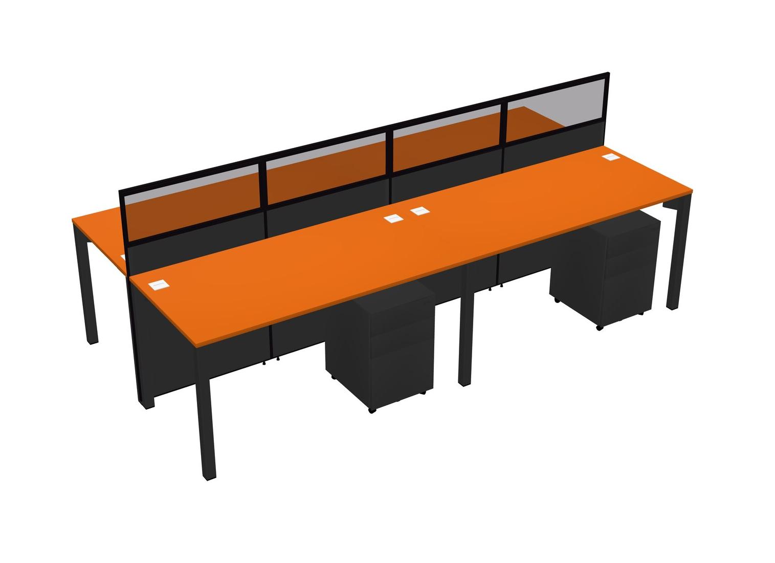 Orange Shared Rectangular Office Cubicle Panel System With Mobile Drawers For 4 Persons