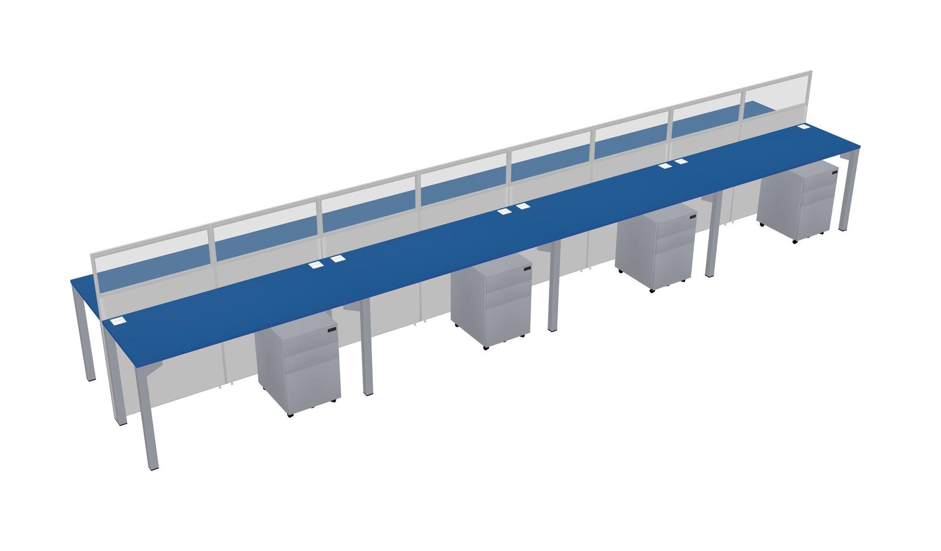 Prism Blue Shared Rectangular Office Cubicle Panel System With Mobile Drawers For 8 Persons