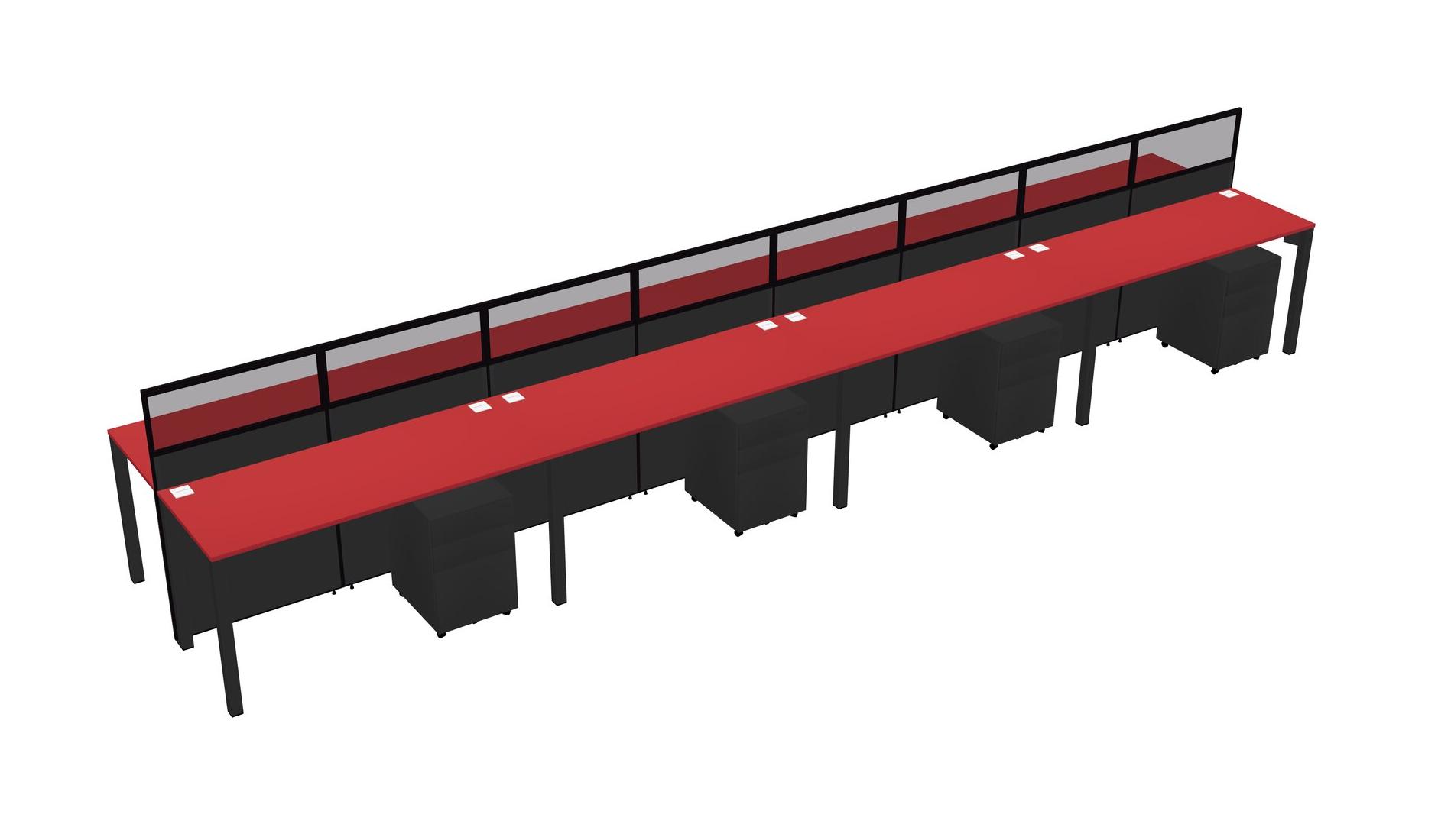 Prism Red Shared Rectangular Office Cubicle Panel System With Mobile Drawers For 8 Persons