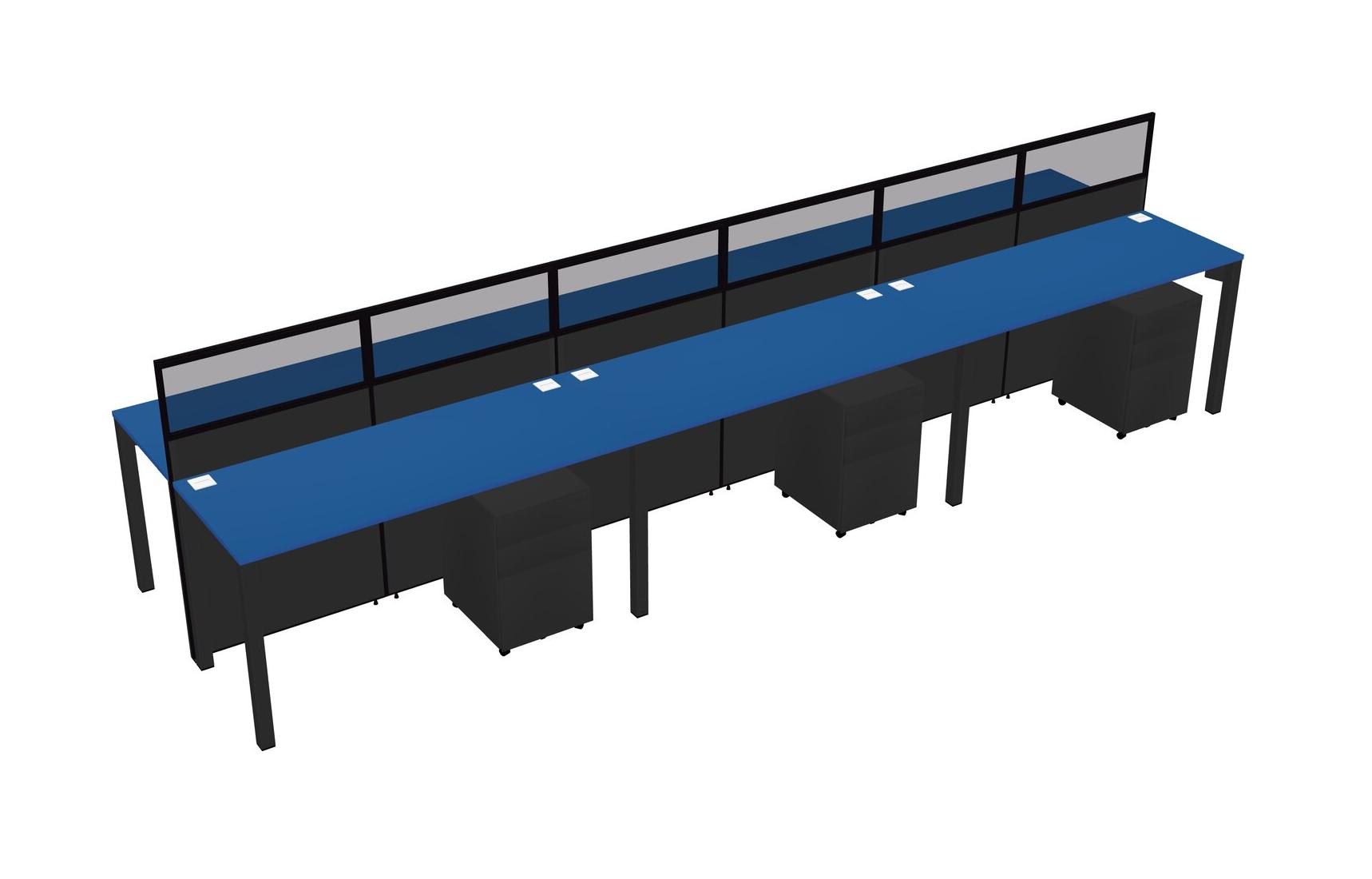 Prism Blue Shared Rectangular Office Cubicle Panel System With Mobile Drawers For 6 Persons