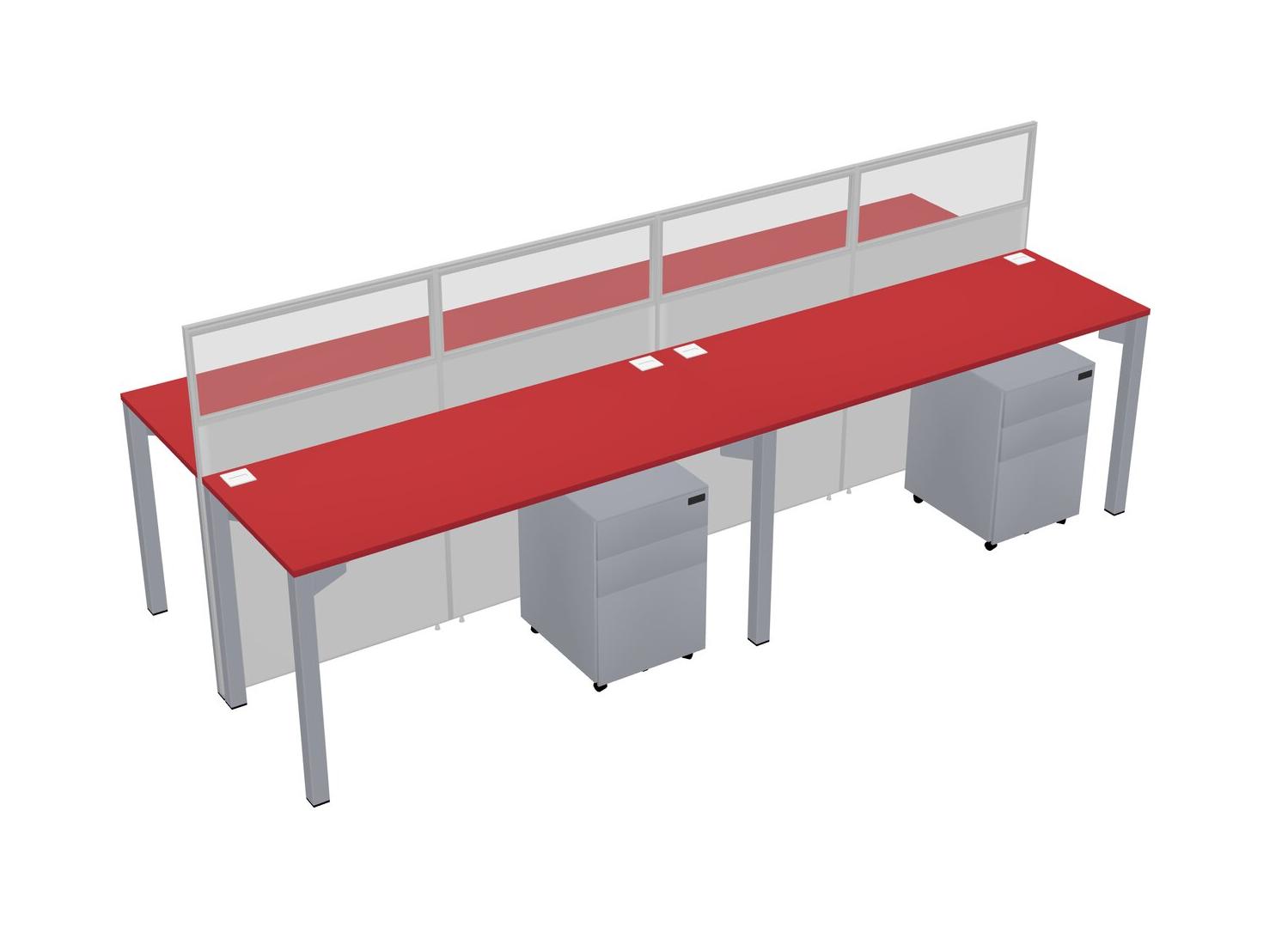 Prism Red Shared Rectangular Office Cubicle Panel System With Mobile Drawers For 4 Persons