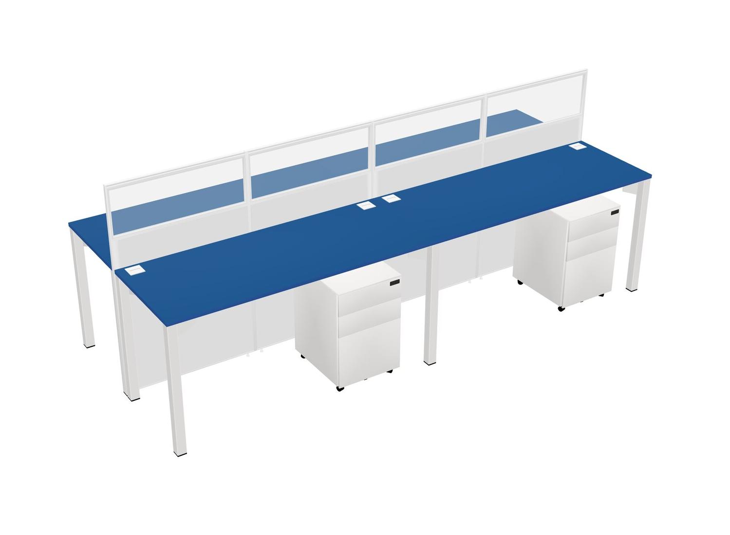 Prism Blue Shared Rectangular Office Cubicle Panel System With Mobile Drawers For 4 Persons