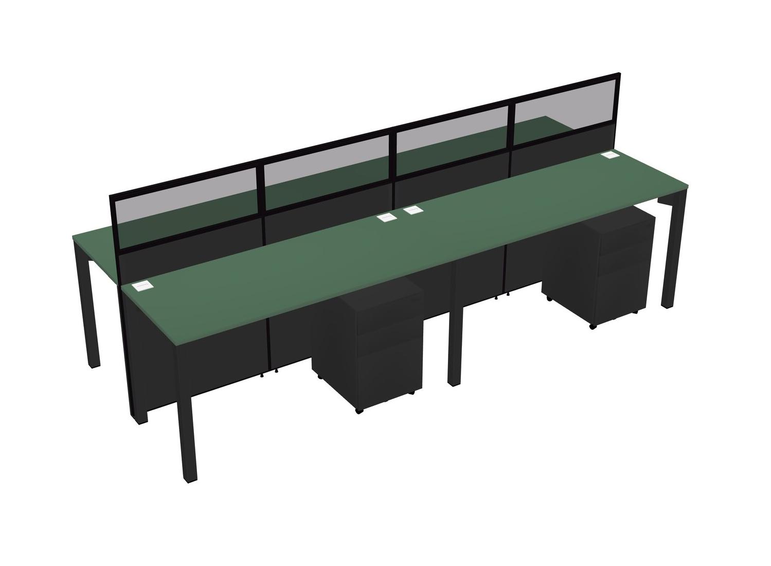 Green Shared Rectangular Office Cubicle Panel System With Mobile Drawers For 4 Persons