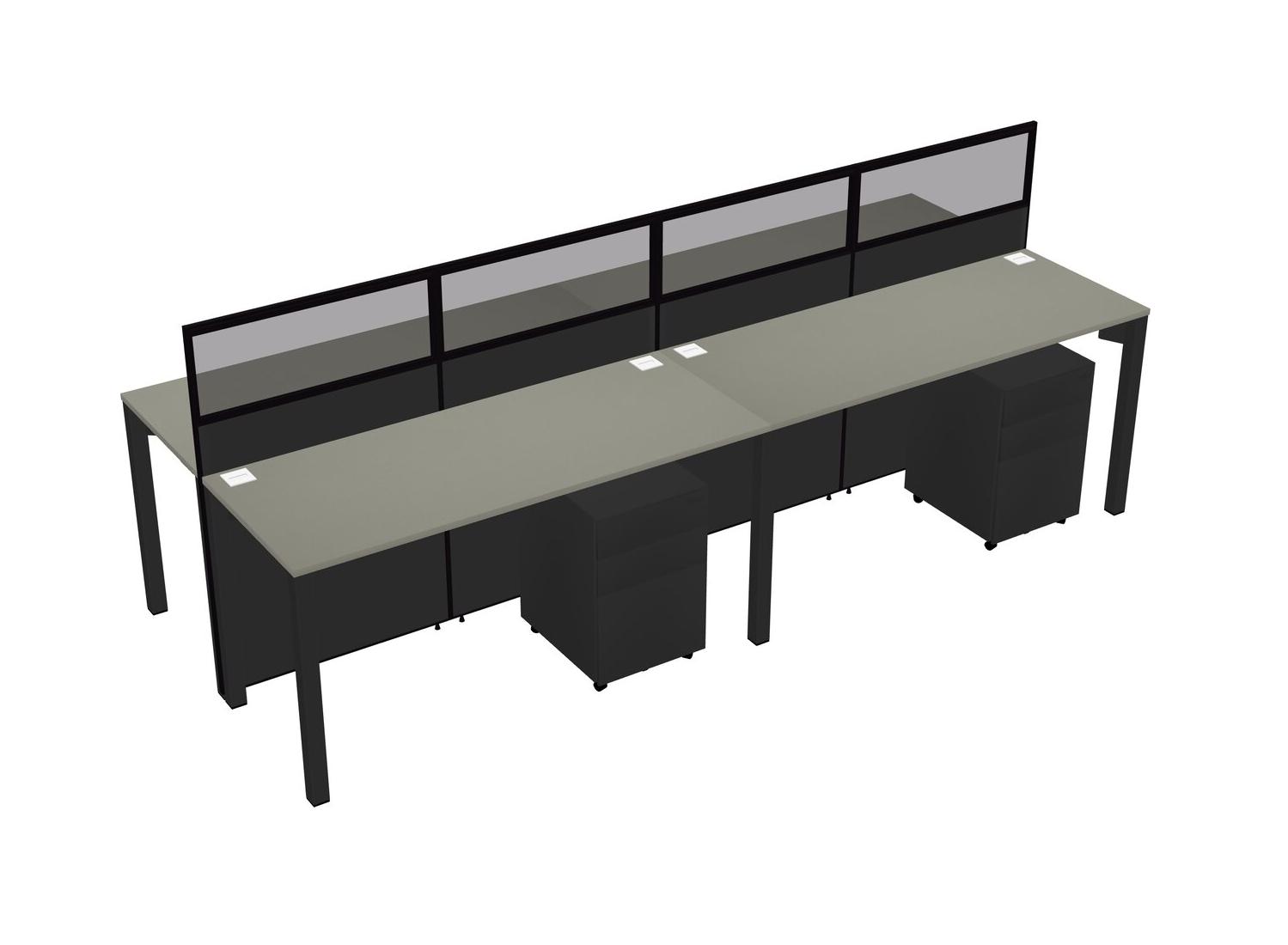 Grey Shadows Shared Rectangular Office Cubicle Panel System With Mobile Drawers For 4 Persons