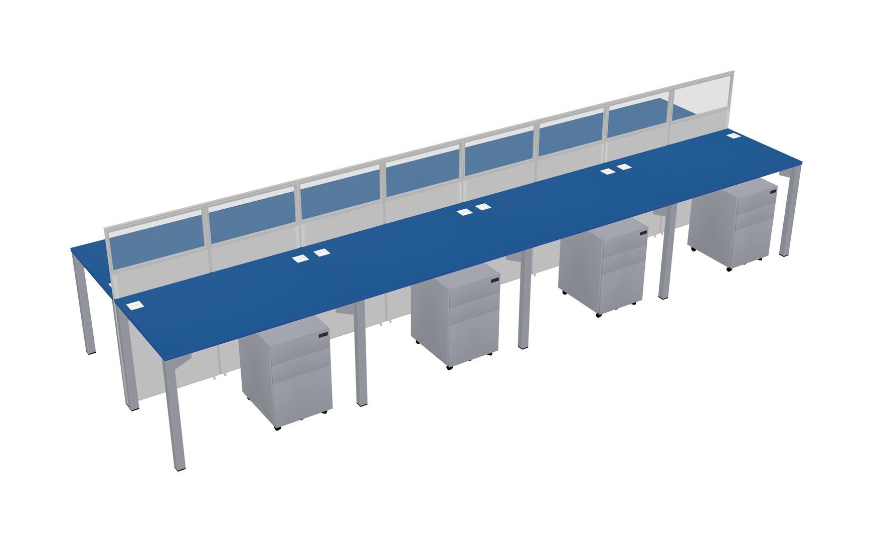 Prism Blue Shared Rectangular Office Cubicle Panel System With Mobile Drawers For 8 Persons
