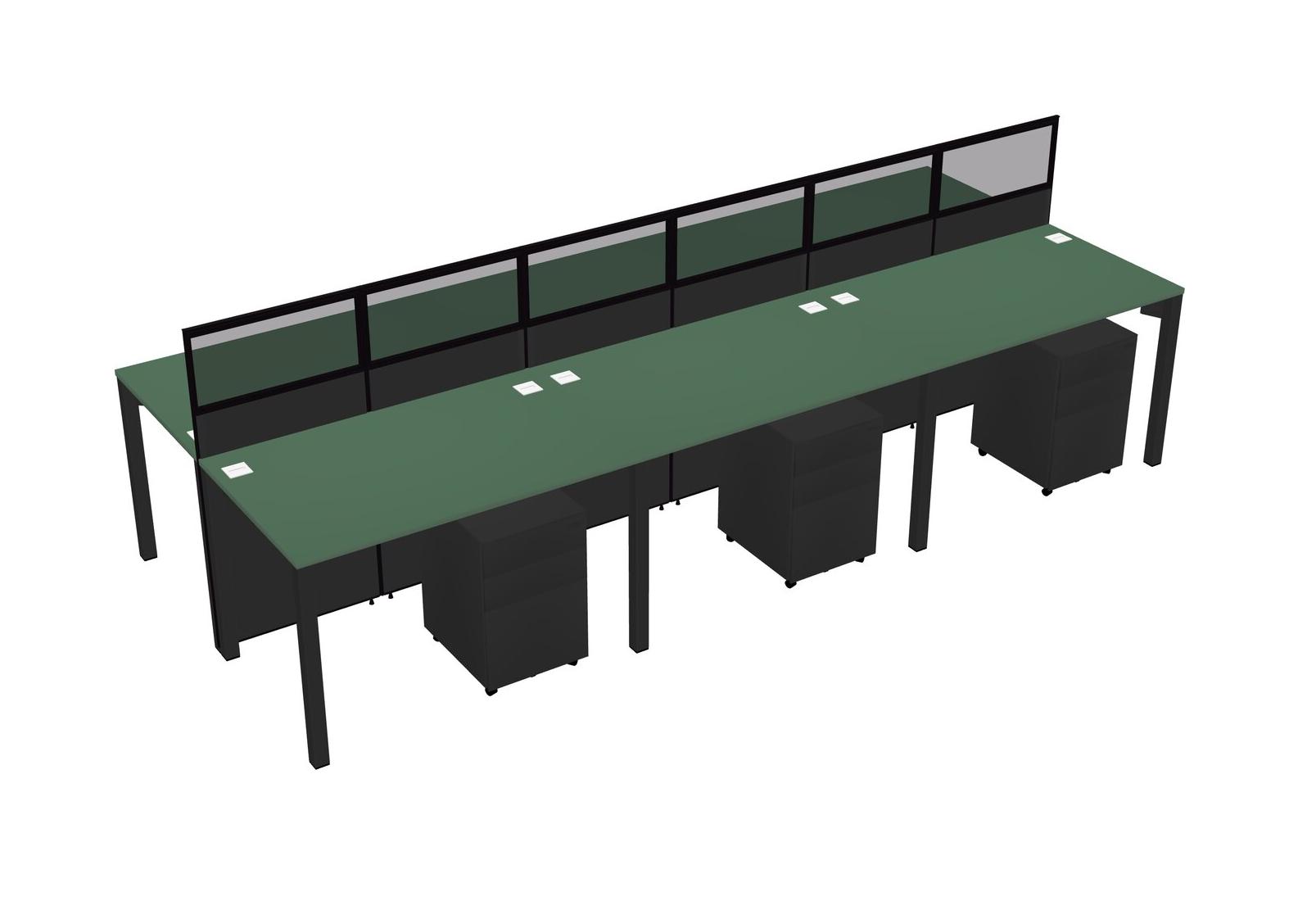 Green Shared Rectangular Office Cubicle Panel System With Mobile Drawers For 6 Persons