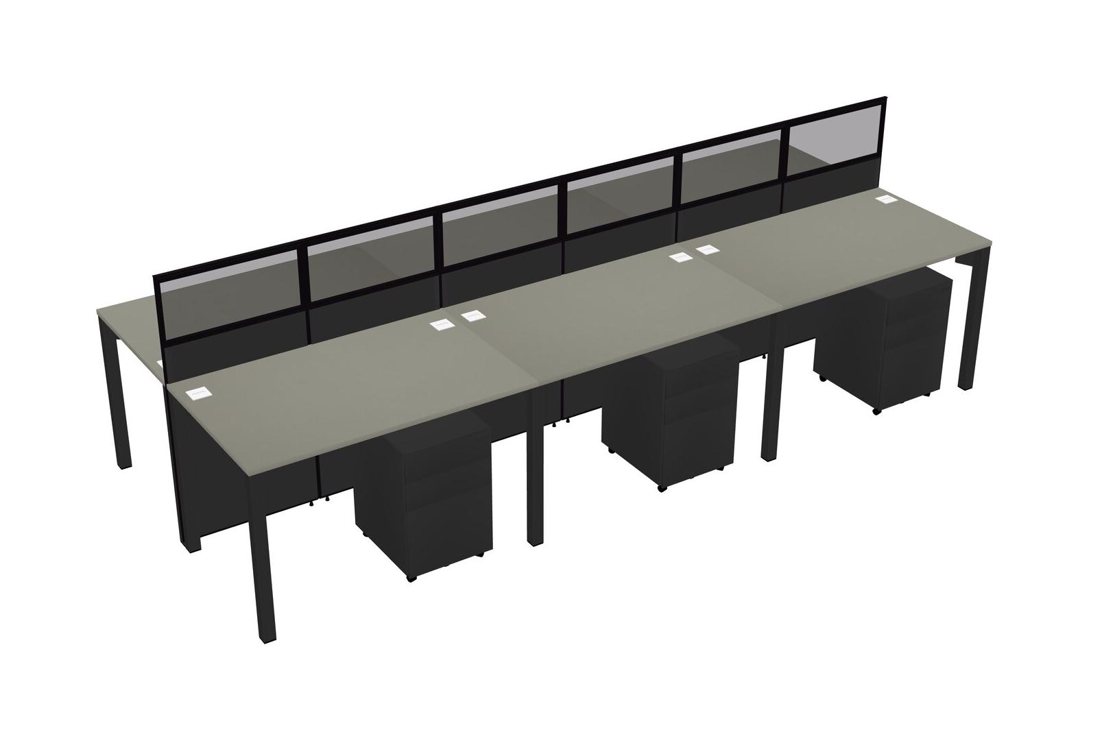 Grey Shadows Shared Rectangular Office Cubicle Panel System With Mobile Drawers For 6 Persons