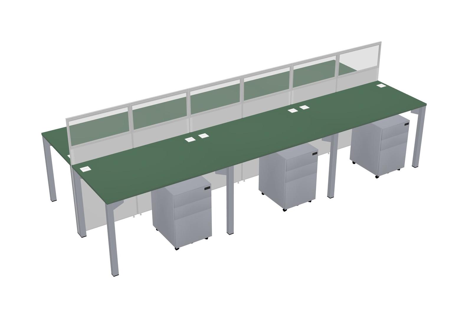 Green Shared Rectangular Office Cubicle Panel System With Mobile Drawers For 6 Persons