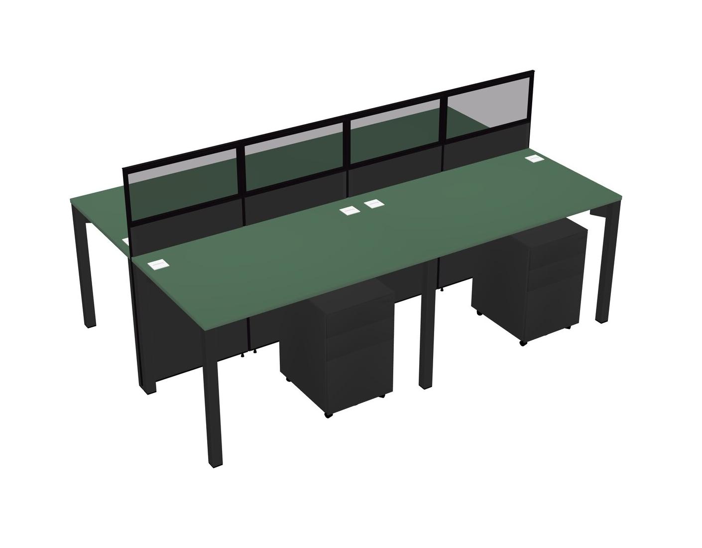Green Shared Rectangular Office Cubicle Panel System With Mobile Drawers For 4 Persons