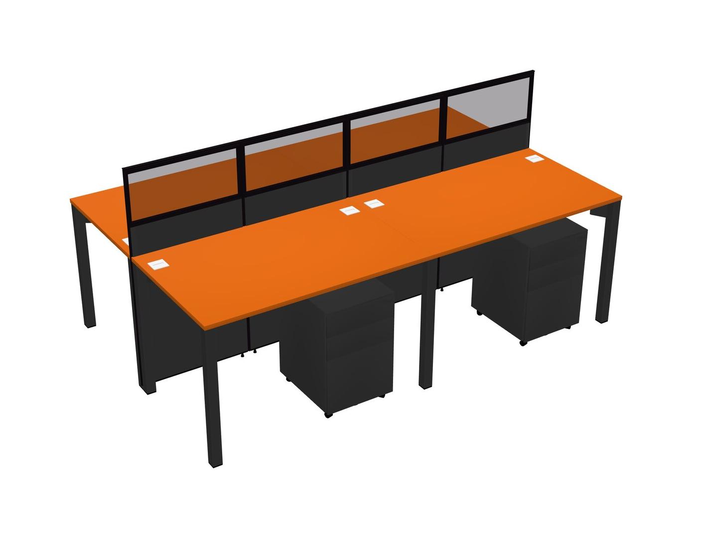 Orange Shared Rectangular Office Cubicle Panel System With Mobile Drawers For 4 Persons