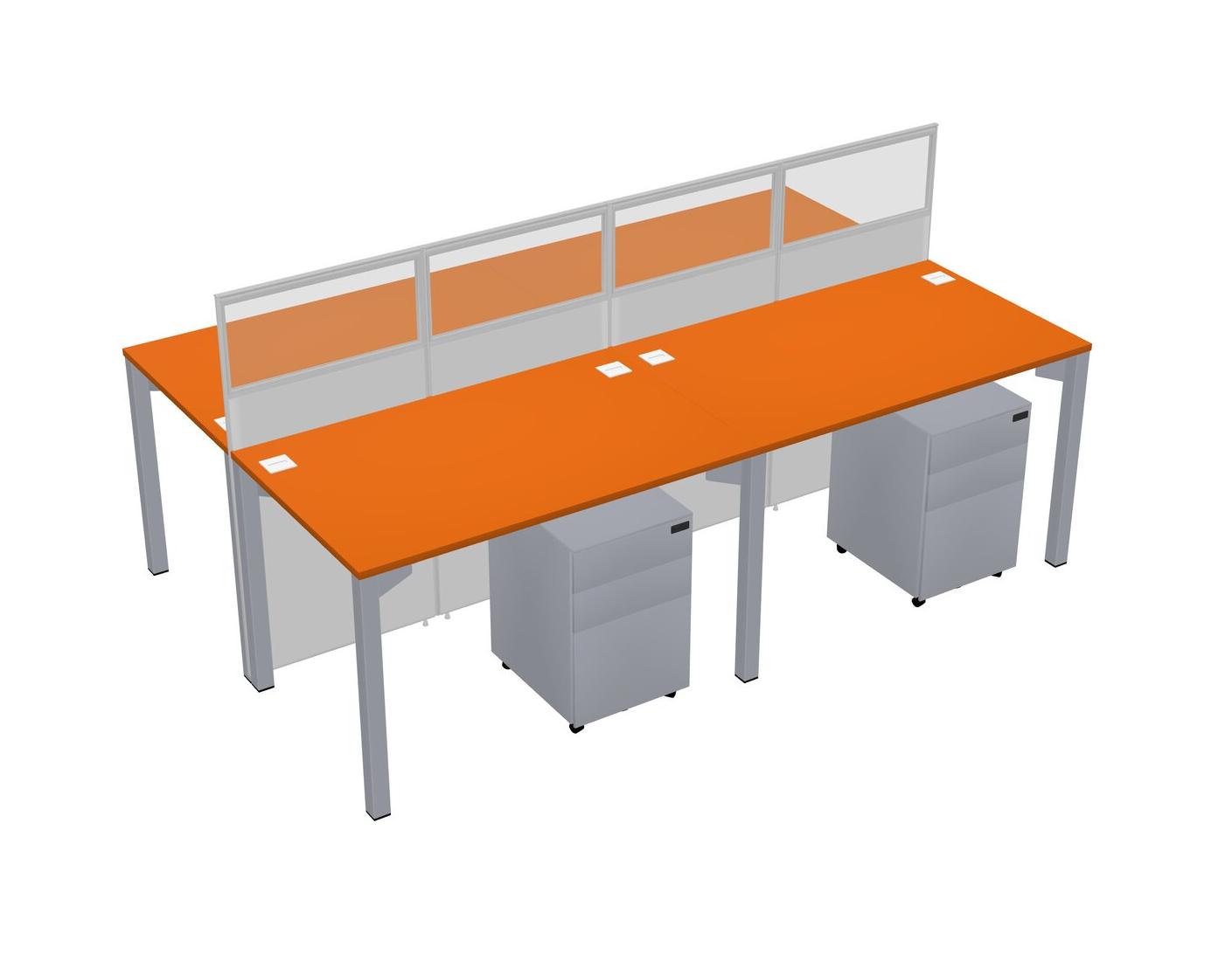 Orange Shared Rectangular Office Cubicle Panel System With Mobile Drawers For 4 Persons