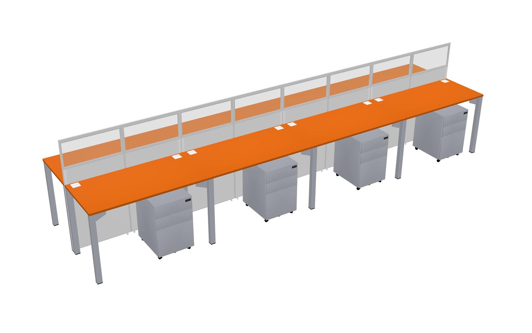 Orange Shared Rectangular Office Cubicle Panel System With Mobile Drawers For 8 Persons