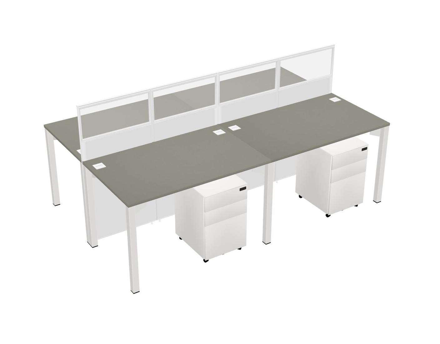 Grey Shadows Shared Rectangular Office Cubicle Panel System With Mobile Drawers For 4 Persons