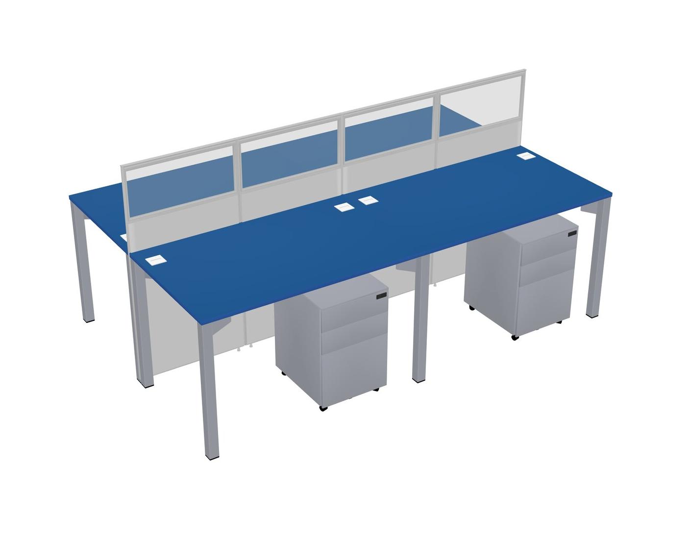 Prism Blue Shared Rectangular Office Cubicle Panel System With Mobile Drawers For 4 Persons
