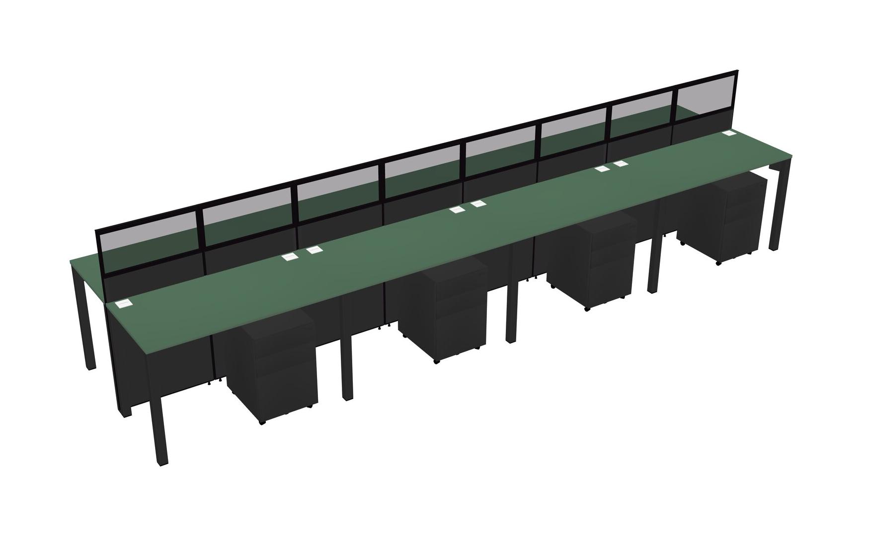 Green Shared Rectangular Office Cubicle Panel System With Mobile Drawers For 8 Persons