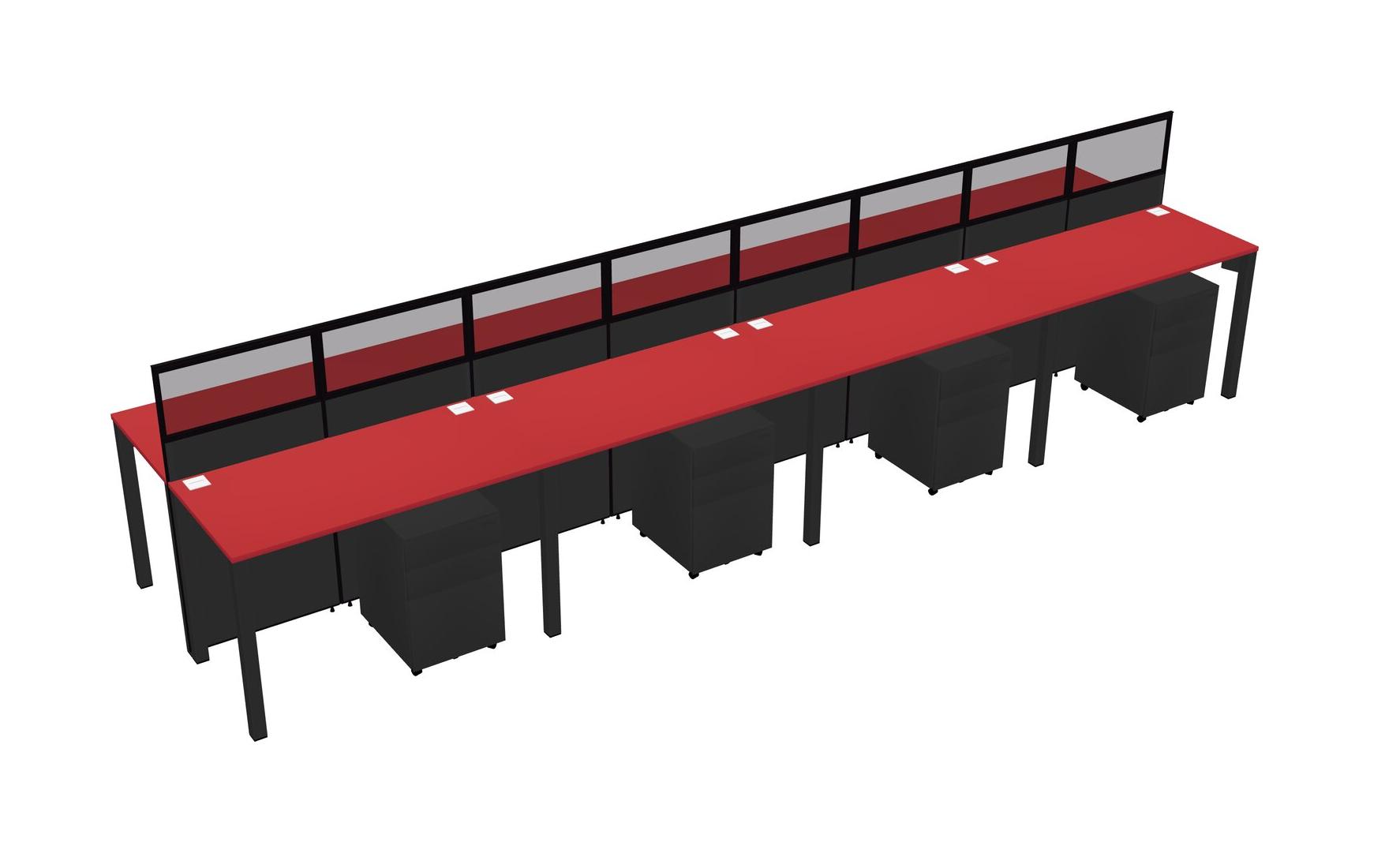 Prism Red Shared Rectangular Office Cubicle Panel System With Mobile Drawers For 8 Persons