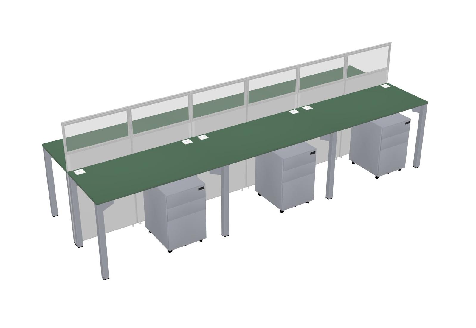 Green Shared Rectangular Office Cubicle Panel System With Mobile Drawers For 6 Persons