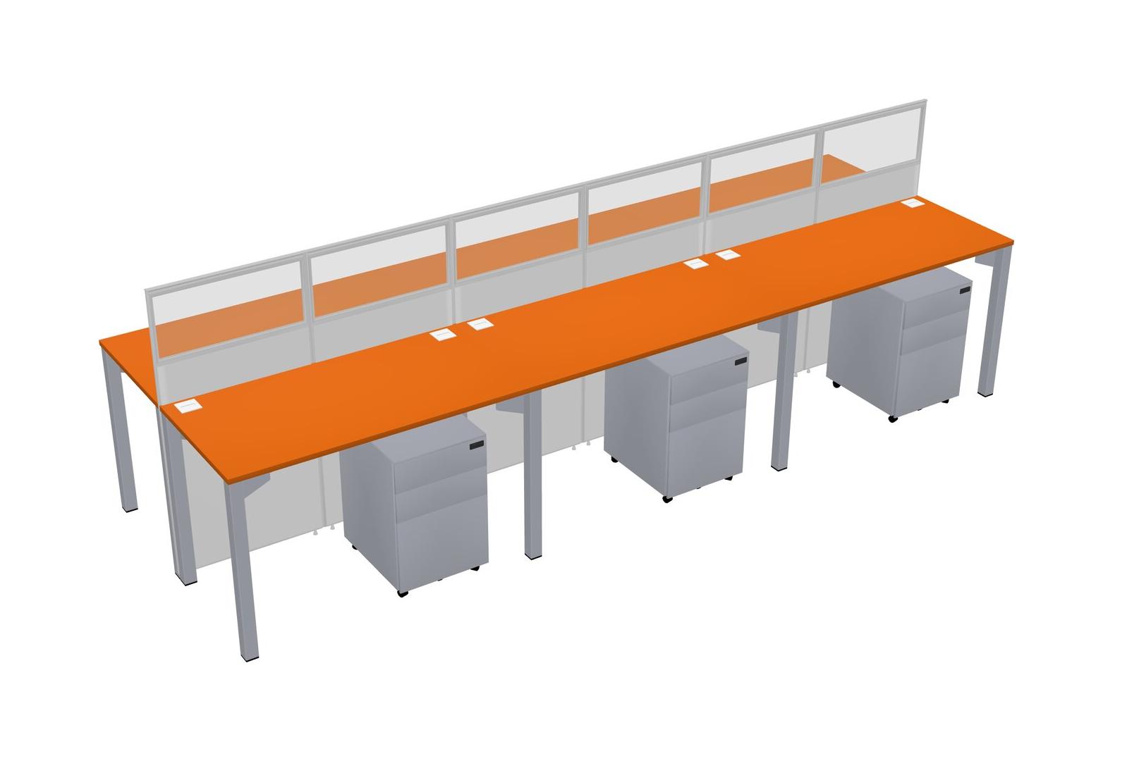 Orange Shared Rectangular Office Cubicle Panel System With Mobile Drawers For 6 Persons