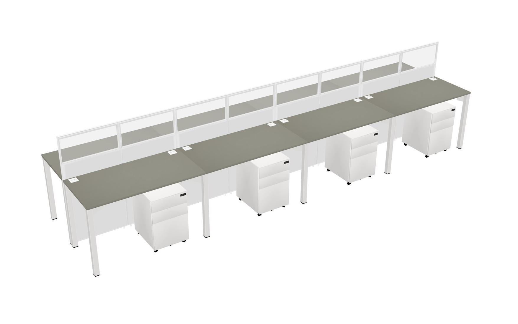 Grey Shadows Shared Rectangular Office Cubicle Panel System With Mobile Drawers For 8 Persons
